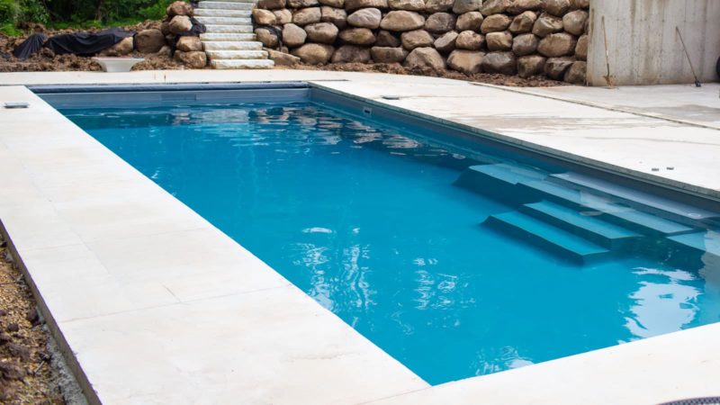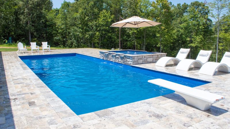 This pool offers you an 8 foot deep end making it suitable for a Class 1 diving board. It is a full 40 foot long pool with a front end entry on the right side of the pool.